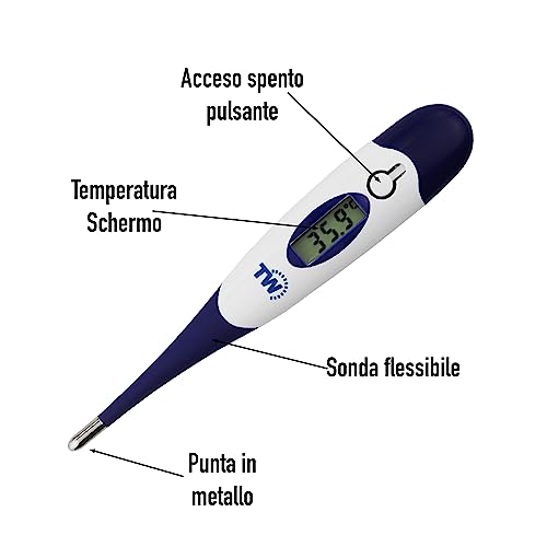 La sonda termometrica è inoltre sicura e sanitaria, poiché non contiene mercurio e può essere facilmente sterilizzata con soluzioni antisettiche.
