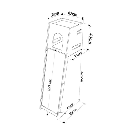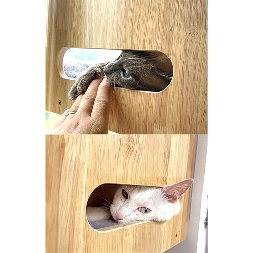 Il design del tiragraffi è pensato per soddisfare le esigenze naturali dei gatti, offrendo superfici in tessuto resistente e ruvido per fare le unghie, piattaforme comode per riposarsi e angoli rialzati per osservare l’ambiente circostante. La robusta costruzione in legno massiccio garantisce stabilità e durata nel tempo, resistendo anche alle forzature del gatto durante l’arrampicata. Il montaggio a parete è semplice e sicuro, grazie a supporti progettati per essere fissati in modo stabile senza danneggiare la superficie.