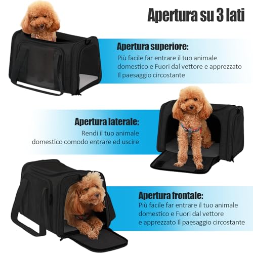TOFFCAEA Trasportino per Cani e Gatti, Gabbietta per Animali Domestici, Tappetino Lavabile Rimovibile, con Tracolla per il Trasporto, Borsa Ripiegabile Viaggio Sull’ Aereo (Nero)L 43 x B 28 x H 28 cm