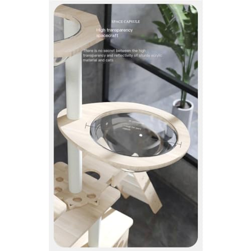Torre del Gatto Rastrelliera for gatti, struttura da arrampicata for gatti, interamente in legno massello, grande ciotola for capsule spaziali Premium, cuccia for gatti, tiragraffi for gatti Struttura