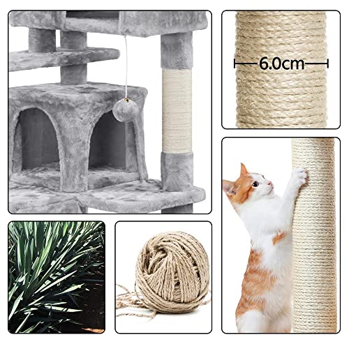 Yaheetech Albero Tiragraffi per Gatti 137 cm con 2 Palle Sisal Naturale Giocattolo Gioco Grigio Chiaro