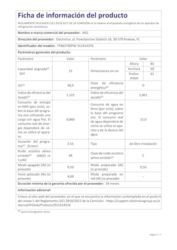 Questo modello offre 15 coperti e una classe energetica A+++, garantendo un consumo ridotto e prestazioni efficaci. Tra le caratteristiche principali vi è la possibilità di regolare l’alt قضey del cestello inferiore per ottimizzare lo spazio a disposizione e adattarlo alle diverse dimensioni delle stoviglie. Inoltre, la lavastoviglie AEG FFB63700PW include il sistema di asciugatura photosynthesis™, che combina un filtraggio avanzato dell’aria con una piacevole ventilazione, garantendo stoviglie asciutte e prive di residui anche senza l’uso di additivi chimici.