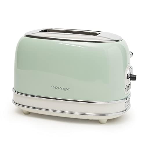 Questo tostapane vintage è un’ottima scelta per chi ama la tradizione e la qualità. Con il design elegante e il colore verde, è un pezzo che si adatta perfettamente a qualsiasi cucina. Il tostatura a 6 livelli offre una grande flessibilità per soddisfare le preferenze personali. Il fatto che non abbia pinze è un plus per chi preferisce un tostatura più facile da pulire. L’acciaio inossidabile garantisce una durata a lungo termine e la potenza di 810 Watt assicura un tostatura rapido e uniforme. Consigliato per chi cerca un tostatura di qualità con un tocco di stile vintage.