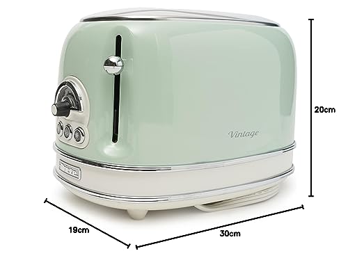 Ariete 155 Tostapane Vintage 2 fette di pane – senza pinze – 6 livelli di tostatura – 810 Watt- Acciaio Inox – Linea Vintage – Verde