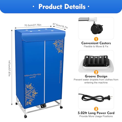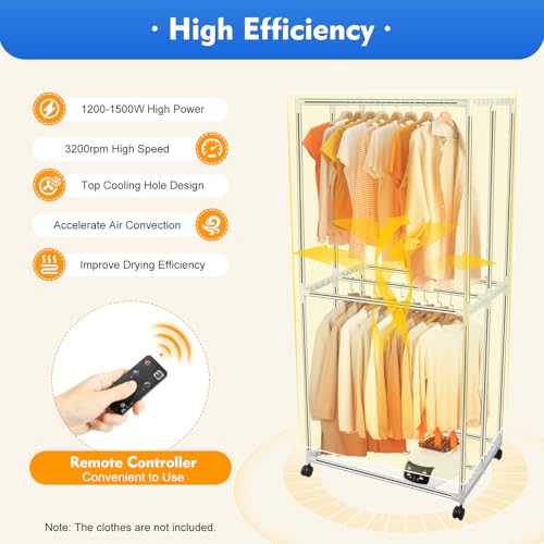 Begoniape Asciugatrice elettrica, 1500 W, portatile ad aria calda con telecomando, 30 kg, doppio armadio a risparmio energetico, grande capacità, pieghevole