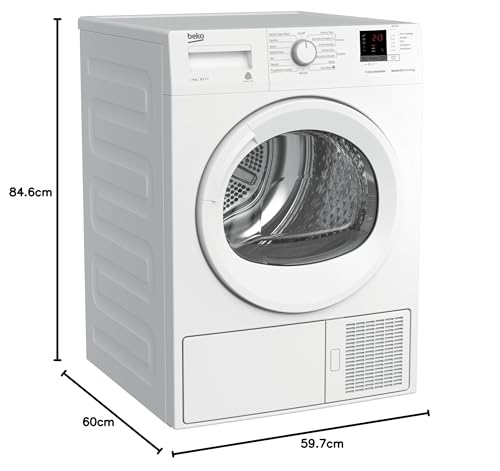 Beko – DRX837WI – Asciugatrice Standard, 8Kg, Classe A+++, Linea Estetica Smart, Display Digit, Motore ProSmart™ Inverter, Oblò Bianco, Programma Lana, Dimensioni HxLxP: 84,6 x 59,7 x 63,3