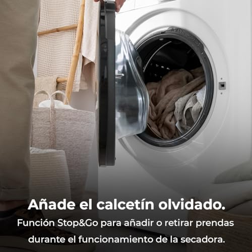 Asciugatura automatica: asciuga i vestiti in modo ottimale grazie ai sensori di umidità che regolano il tempo di asciugatura; stiratura facile: programma che riduce al massimo la quantità di pieghe, facilitando così la stiratura dei capi; funzione Stop & Go; per l’asciugatrice durante il funzionamento; se hai dimenticato di mettere qualcosa, o vuoi toglierlo qualcosa, una volta iniziato il programma, puoi fermarlo e aprirlo per rimuovere qualcosa o ricaricarlo