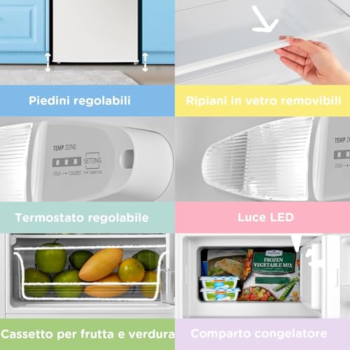 【Mini frigo con congelatore】 Il prodotto è dotato di un comparto freezer che raggiunge una temperature di -18 ℃, adatta alla conservazione di alimenti congelati