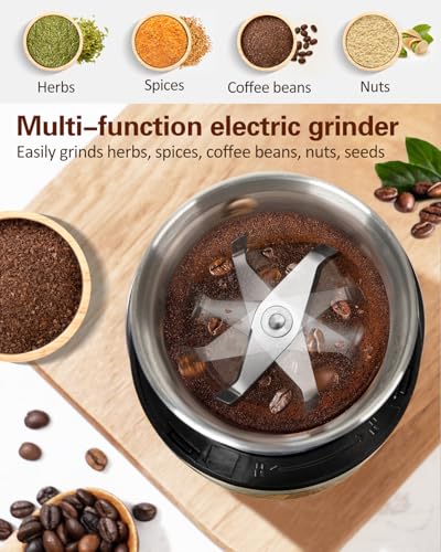 【Macinatura Multifunzionale】Macina caffè elettrico è dotato di lame affilate realizzate in acciaio inossidabile di alta qualità 304, che consentono di macinare facilmente pepe, cannella, chicchi di caffè, noci, cereali e altri alimenti secchi. Soddisfa tutte le vostre esigenze di macinatura.