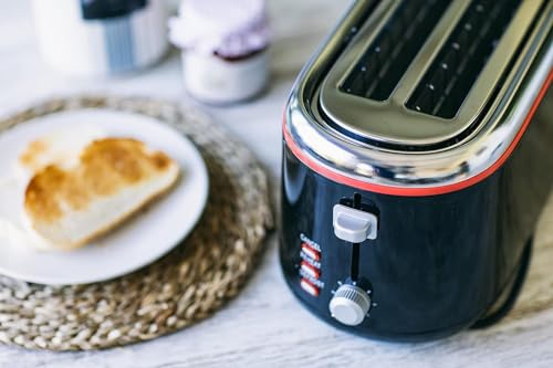 CARATTERISTICHE: POTENZA AD ALTE PRESTAZIONI: Tostapane nero da 1300 W, questo tostapane a 4 fette garantisce una tostatura rapida e uniforme per una colazione perfetta in pochi minuti