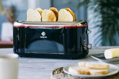 Family Care Tostapane Fetta Lunga 1300W – Tostapane 4 Fette, 3 Funzioni, Supporto per Brioche, 7 Livelli di Tostatura, Vassoio Raccogli Briciole, Corpo in Acciaio Inossidabile