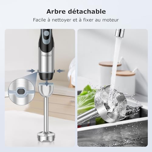 FRESKO Frullatore a immersione, 1000 W, con 12 livelli di velocità, pulsante Turbo, tazza da 700 ml con coperchio, in acciaio inox, per salsa, alimenti per bambini e zuppa