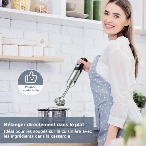 CARATTERISTICHE: Frullatore a mano da 1000W: la potenza extra di 1000W è più veloce e più fluida rispetto agli altri frullatori, aiutandovi a risparmiare ancora più tempo