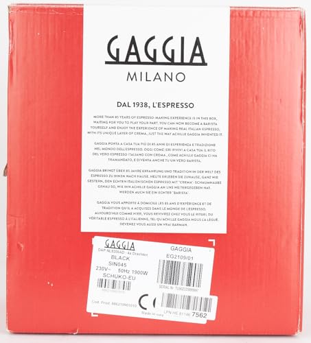 In conclusione, la Gaggia EG2109 BLACK è una macchina da caffè espresso di ultima generazione, dotata di funzionalità di punta e design elegante. Se stai cercando una macchina da caffè che sia anche un pezzo di design, questa è la macchina perfetta per te.