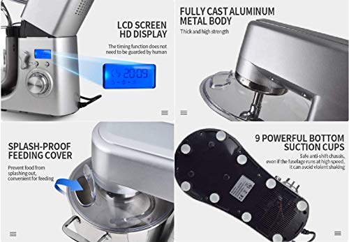 JHNEA Impastatrice Planetaria Multifunzione Lusso, 1500W – 6 velocità Impasto, Frusta a Foglia – Frusta a Filo – Gancio Impastatore, Sbattitore Elettrico Cucina con Display LCD,Sliver
