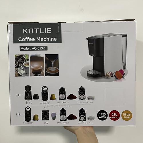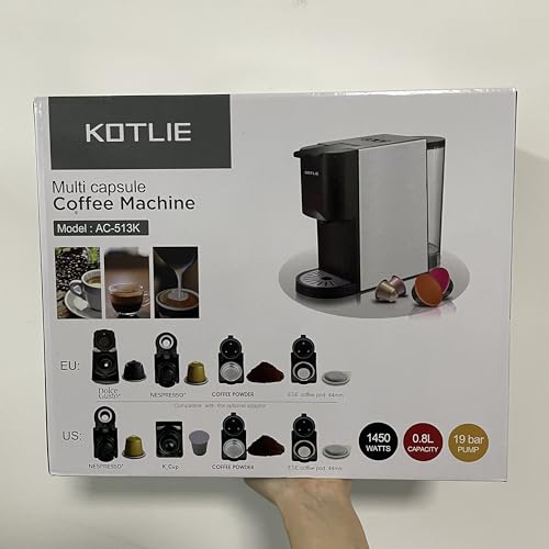 KOTLIE AC-513K Macchina da Caffè 4 in 1 per Nespresso Original/Dolce Gusto/Caffè Macinato/ESE Pads(44mm), 19 Bar, 800 ML