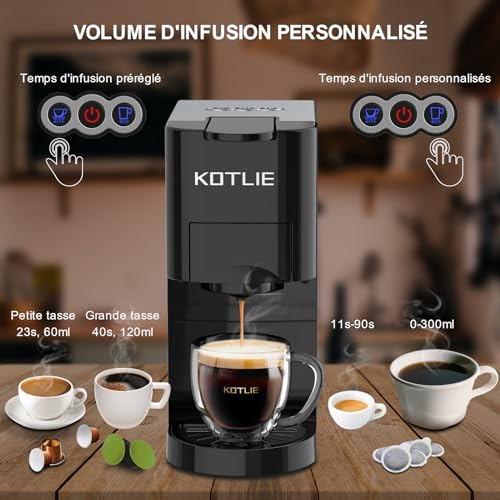 CARATTERISTICHE: 【Macchina da caffè 4 in 1】Capsule KOTLIE compatibili con capsule per Dolce Gusto/Nespresso Original/caffè macinato e cialde ese. Pressione di 19 bar, temperatura ottimale di 85°C, Saturazione più uniforme dei fondi per estrarre tutto il sapore e l’aroma, Iniziare la giornata più velocemente ed essere in vantaggio rispetto agli altri