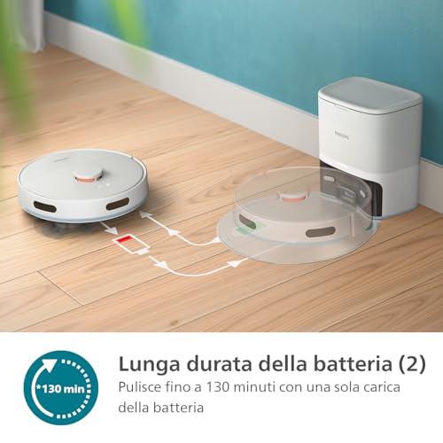 Philips HomeRun Serie 2000 si presenta come un 2-in-1 robot aspirapolvere e lavapavimenti dotato di 2700Pa di aspirazione ed autonomia di 130 minuti, costituendo un’ottima scelta per chi desidera mantenere la sua casa pulita e ben conservata. Questo strepitoso strumento domestico è dotato di navigazione laser per fornire precisione nella pulizia e assicurarsi che nessuna zona di pavimento o di pavimento sia lasciata da parte.