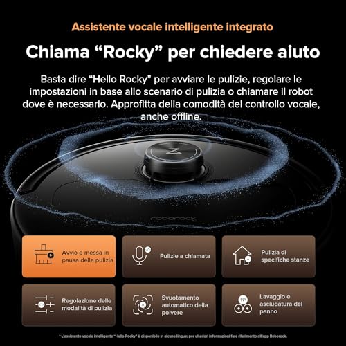Il Roborock Qrevo Master è inoltre dotato dell’assistente vocale intelligente “Hello Rocky”, che gli consente di essere controllato a voce. Questa funzione permette di gestire l’aspirapolvere semplicemente dandogli ordini vocalmente, rendendolo pratico e facile da usare.