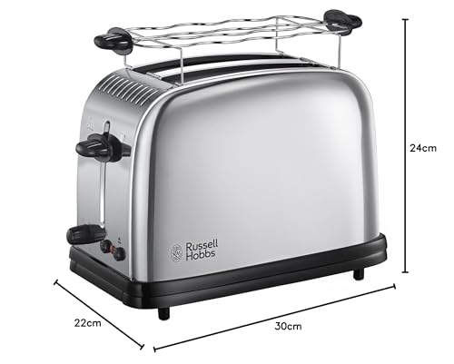 Russell Hobbs Tostapane – 2 Fette – Acciaio Inox Lucidato; Scomparti per toast extra large; 6 livelli di doratura; Funzione di scongelamento, Tecnologia di toast rapido, 1670 W, Victory 23310-56