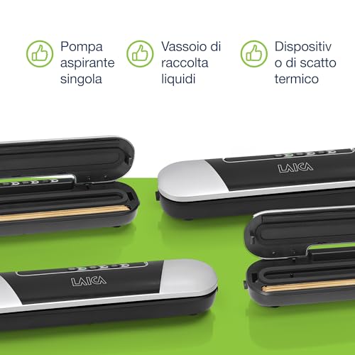 Sigillatrice a caldo e macchina sigillatrice sottovuoto per alimenti LAICA VT3205 con fornitura 2 extra di sacchetti – Design compatto, conservabile in un cassetto