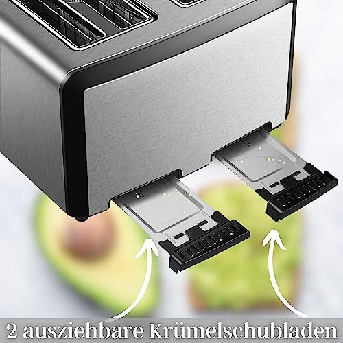 Tostapane XXL con 4 fessure per tostapane | 1600 Watt | 6 livelli | 2 x inserti per panini | funzione scongelamento | 2 x cassetti per briciole | acciaio inox | 4 strati | display LED