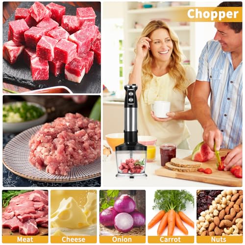CARATTERISTICHE: Set di frullatori elettrici 5 in 1: comprende frullatore a immersione in acciaio inox, frusta, ciotola per tritare da 500 ml e caraffa dosatrice da 700 ml. Molte opzioni a disposizione: zuppe, salse, maionese, puree, alimenti per bambini e altro ancora.