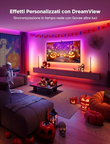La striscia LED è dotata di una lunghezza di 3,6 metri, sufficiente per coprire la maggior parte delle TV, e offre una gamma di colori RGBIC che può essere personalizzata per creare effetti visivi spettacolari durante la visione di film e giochi. La doppia telecamera permette di rilevare la luce ambiente e adattare automaticamente la luminosità della striscia LED, garantendo un’illuminazione ottimale.