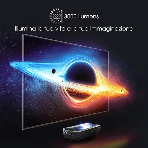 Hisense 120L9HD Laser TV 120″ 4K, Schermo anti-riflesso ALR, 3000 lumen, 4K, HDR10, Smart TV VIDAA 6.0, Dolby Vision e Atmos, Apple Airplay 2 & Home Kit, Alexa, tivùsat 4K