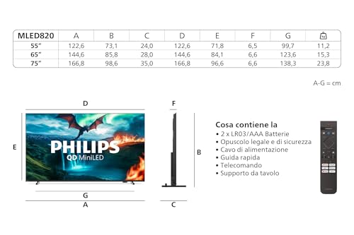 Philips 55MLED820 Mini LED 4K Smart TV – Display 55’’ con processore P5 Perfect Picture Ultra HD, Titan OS, Dolby Vision e Dolby Atmos Sound