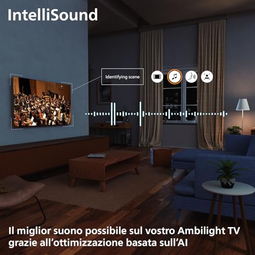 CARATTERISTICHE: TV AMBILIGHT: Le uniche TV con luci LED reattive integrate sul retro dello schermo, lasciandovi immergere in un alone di luce colorata. Cambia tutto: la TV sembra più grande, vi trascina in profondità nella trasmissione preferita