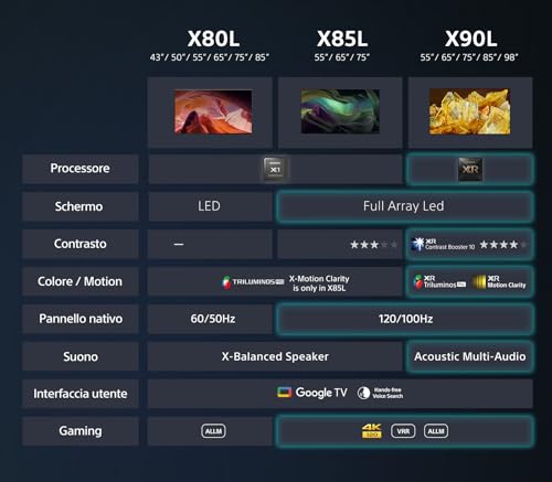 CARATTERISTICHE: La nostra gamma di colori Triluminos Pro sull’X80L è ampia, ricca di sfumature e tonalità che non troverai su altri televisori.Il nostro processore X1 è la potenza dietro queste immagini luminose, in grado di analizzare i contenuti in tempo reale per rivelare più dettagli e consistenza in ogni scena.