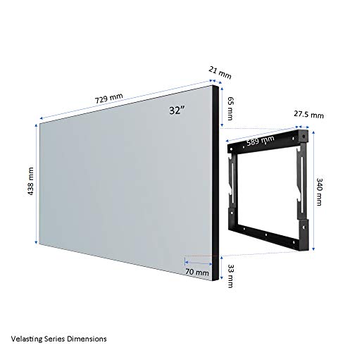 DIMENSIONI E INSTALLAZIONE Dimensioni dell’unità (LxAxP): 728x440x52mm/28,7″L x 17,3″A x 2″P, se è integrato nel muro, aprire il foro nel muro dopo aver ricevuto il televisore. Montaggio integrato per montaggio a incasso e a parete il supporto per il montaggio su superficie è incluso (fornire le istruzioni di installazione)