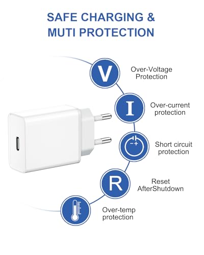 CARATTERISTICHE: Caricatore USB C 20W: Il caricabatterie USB C dotato di erogazione di potenza e porta di ricarica rapida 3.0, fornisce una potenza di uscita massima di 20W per il caricatore iPhone, caricando il tuo iPhone 13 fino al 50% in soli 30 minuti, Il caricabatterie iPhone è più veloce del caricatore iPhone originale Apple da 5W, risparmiando oltre 1 ore per te.