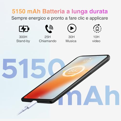 💝🍾【Sofisticato Elegante Design + Garanzia di 2 anni】Il smartphone offerta DOOGEE N55 PRO ha un design elegante e raffinato. Allo stesso tempo, il profilo sottile del telefono cellulare in offerta, con soli 8,6 mm e 186 grammi di peso ultra-leggero, offre una presa comoda e un piacere visivo. Per DOOGEE N55 PRO smartphone offerta ,forniamo una custodia protettiva gratuita e un servizio di garanzia di 2 anni per offrirti una doppia protezione.Se hai qualche dubbio sull’uso, scrivi al venditore, ti risponderà entro 24 ore.