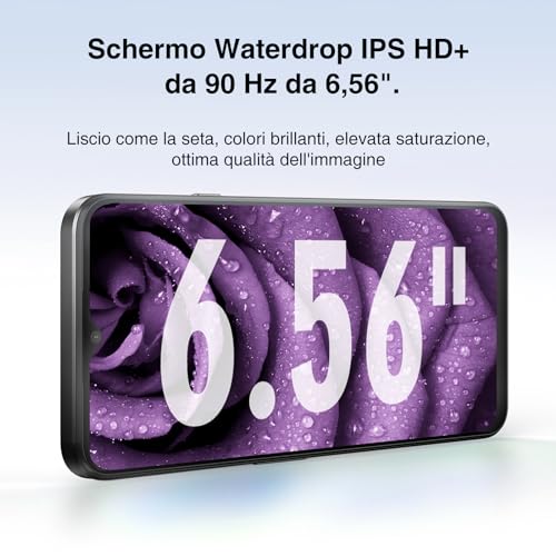💝🍾【6.56” + 90Hz IPS Waterdrop Schermo】L’ampio schermo da 6,56” dello smartphone offerta DOOGEE N55 PRO e l’elevata frequenza di aggiornamento a 90 Hz con un rapporto schermo del 90% portano la tua esperienza visiva a nuovi livelli, immergendoti in un mondo affascinante ed esteso. Lo schermo in formato 20:9 del telefono cellulare in offerta presenta una cornice squisitamente sottile che crea un’esperienza visiva fluida.DOOGEE N55 PRO è dotato di un’avanzata tecnologia anti-impronta che utilizza un rivestimento sottovuoto per garantire che lo schermo dello smartphone economico rimanga incontaminato e senza macchie.