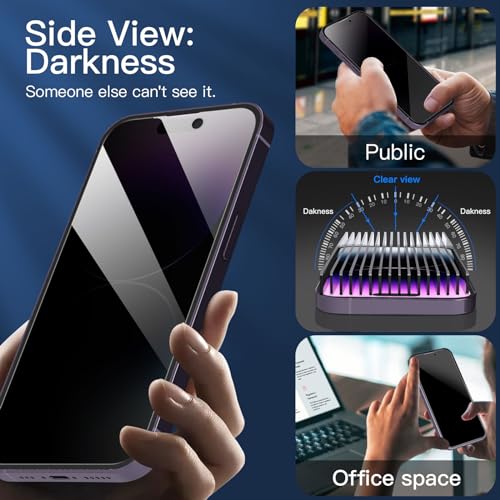 CARATTERISTICHE: Set di 3 Pellicola Protettiva anti-spia per iPhone 14 Pro (6,1 Pollici). Durezza 9H, resistenza ai graffi, Equilibrio tra privacy e protezione degli occhi