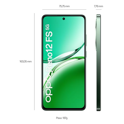 OPPO Reno12 FS 5G AI Smartphone, Tripla fotocamera 50+8+2MP, Selfie 32MP, Display 6.67” 120HZ AMOLED FHD+, 5000mAh, RAM 12GB(Esp4GB/8GB/12GB)+ROM 512GB, Supporto Auto [Versione Italia], Olive Green