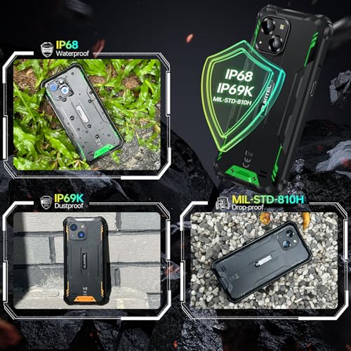 【Ruggedness Certified】OUKITEL WP32 PRO cellulare indistruttibile, il tuo compagno robusto – certificato IP68/IP69K/MIL-STD-810H per durata. Può resistere a profondità 1.5m per 30minuti, sopravvive a cadute 1.5m, telaio in lega alluminio e angoli rivestiti in gomma offrono stile robusto e lo rendono perfetto per i lavoratori all’aperto. Da -40°C a 70°C, OUKITEL WP32 PRO telefono cellulare il vostro partner affidabile in ambienti difficili.