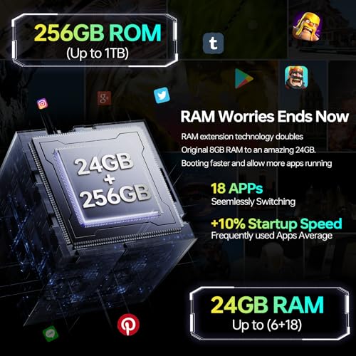 CARATTERISTICHE: 【24(6+18)GB RAM + 256GB ROM/1TB & Android 14】Ampio spazio, potenzialità illimitate, 6GB RAM dello smartphone rugged OUKITEL WP32 PRO rugged smartphone può essere estesa a 24GB andando su Impostazioni – Memory Expansion, sorprendente spazio archiviazione interno 256GB, apre porte a un mondo app, giochi e media senza un pizzico ritardo. Con il più recente sistema Android 14, garantendo prestazioni senza soluzione continuità e funzionalità sicurezza alto livello.