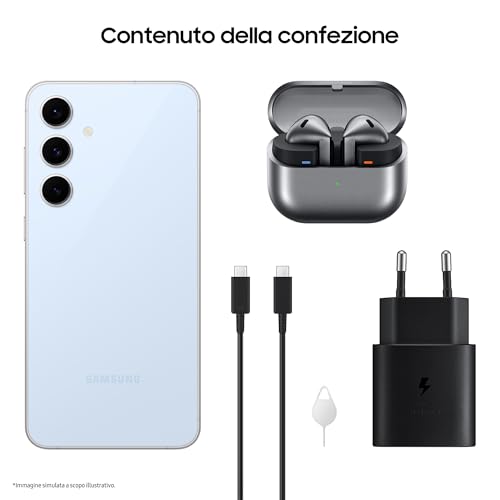 Samsung Galaxy S24 FE Smartphone AI,Caricatore Incluso, Display 6.7” Dynamic AMOLED 2X, 8GB RAM, 128GB, Batteria a lunga durata, IP68,Blue+Galaxy Buds3 Silver Auricolari Open type True Wireless 2024