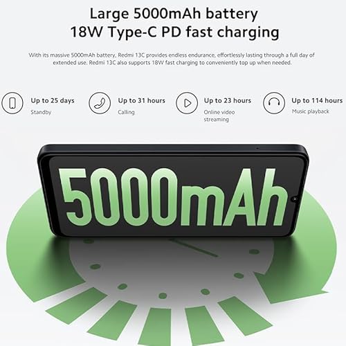 Il Redmi 13C è dotato di una batteria di 5000 mAh, che consente di utilizzare il dispositivo per tutto il giorno senza dover ricaricare. Inoltre, il dispositivo è dotato di carica rapida a 18 W, che consente di ricaricare il dispositivo in poco tempo.