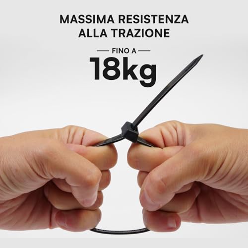 CARATTERISTICHE: 🔗200 Fascette in nylon 6.6 (poliammide PA66) misura 200×3,5mm. Massima tenuta e resistenza alla trazione fino a 18Kg. Colore Nero