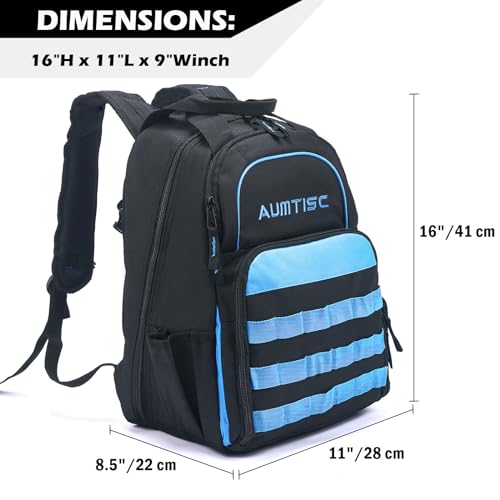 AUMTISC Zaino per attrezzi da elettricista, borsa per attrezzi resistente e durevole, porta attrezzi per tecnico con organizer multitasche blu