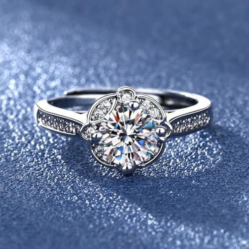 Beydodo Trauring Donna Singola Oro Bianco 585, Anello Donna Fiore con Diamante Creato 1ct Anelli di Fidanzamento Anello Matrimonio Senza Nichel Misura 49-63, Diamante creato