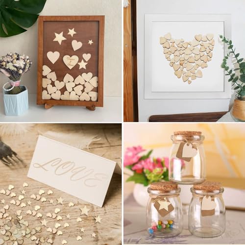 Bieiyhe 200 Pezzi Mini Cuori Legno Decorative stelline di legno piccole per decorazioni Cuoricini Legno Matrimonio Cuoricini per Bomboniere Decorazioni Legno Piccole Miste Cuore Dischi Legno Fai Da Te