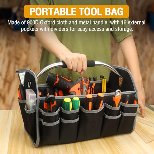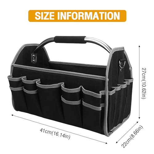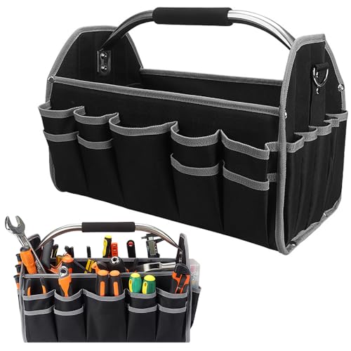 Borsa degli attrezzi da 40,6 cm, organizer pieghevole con apertura superiore per un facile accesso agli utensili, struttura resistente all’acqua, borsa per attrezzi da elettricista con rivestimento