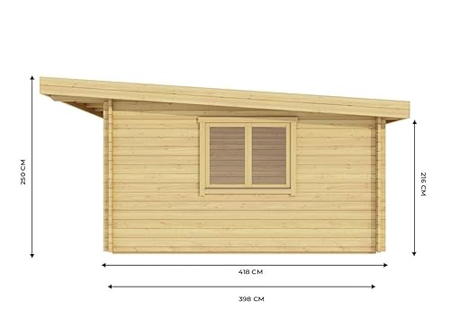 Capanno in legno 22 m² – Spessore parete: 44 mm – Spazio officina/fai da te – Legno naturale di qualità – Doppia porta – Doppi vetri