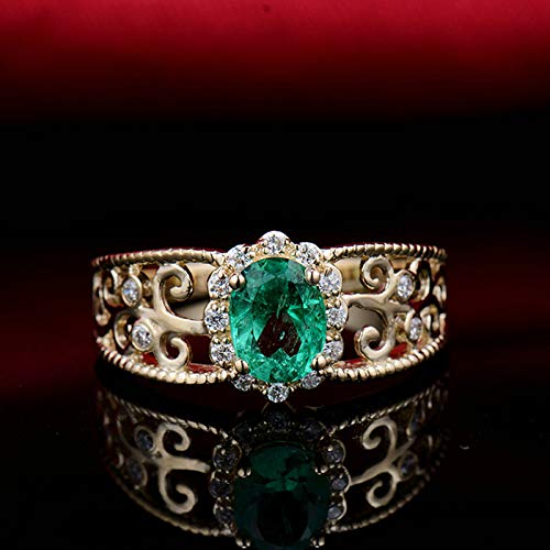 Daesar Anello in Oro Giallo 18K, Anelli Fidanzamento Coppia Viti Vuote Forma Ovale Smeraldo 0.85ct Anelli Nuziali Oro Misura 25