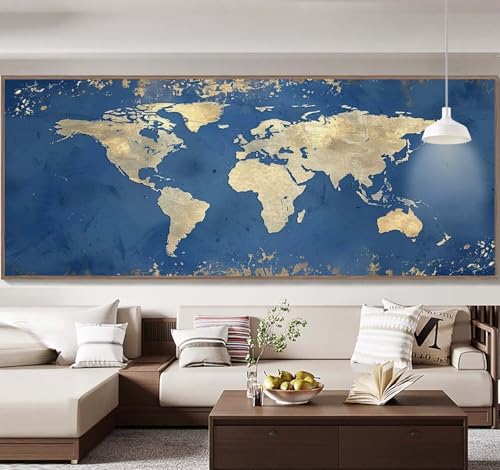 Dipingi con i Numeri Adulti Grandi Dimensioni 50x150cm,mappa mondo Dipingere con i Numeri Hobby Creativi Adulti,Fai da Te Acrilici Paint by Numbers,Decor da Parete di Casa Regali(Senza Cornice)A50